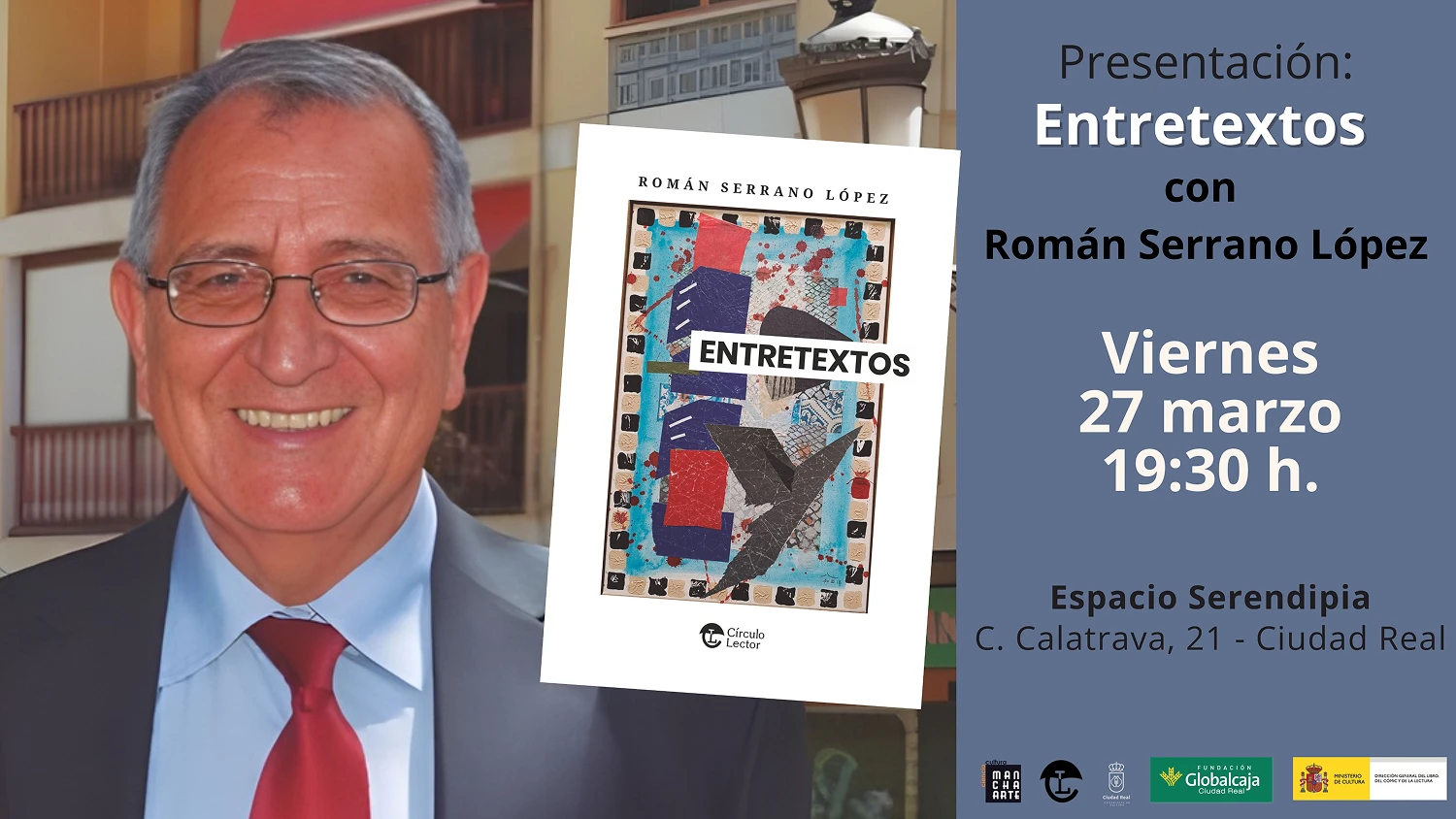 El próximo viernes 27 de marzo, el mundo de las letras tiene una cita ineludible en el corazón de Ciudad Real. Tenemos el placer de invitaros a la presentación de «Entretextos», la última obra de Román Serrano López, que tendrá lugar en el Espacio Serendipia a las 19:30 h.